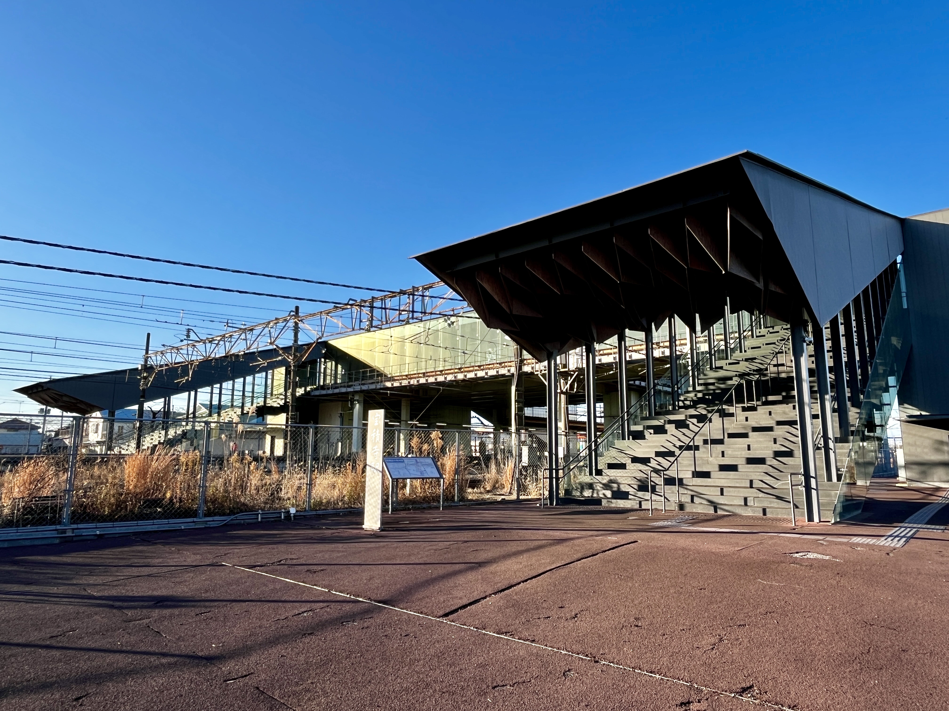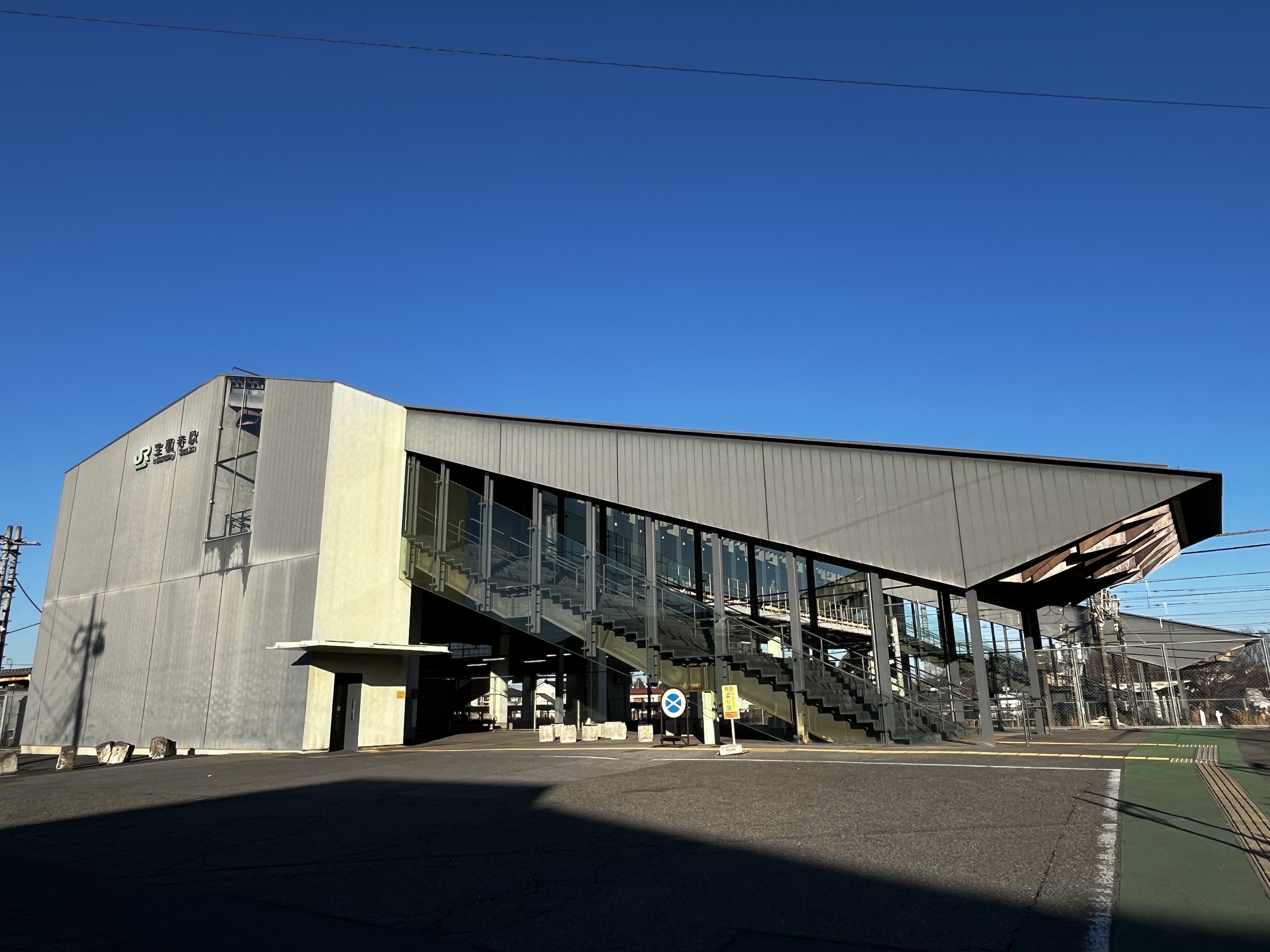 駅舎は隈研吾氏がデザインされたとのことで、スタイリッシュな駅舎になっています。