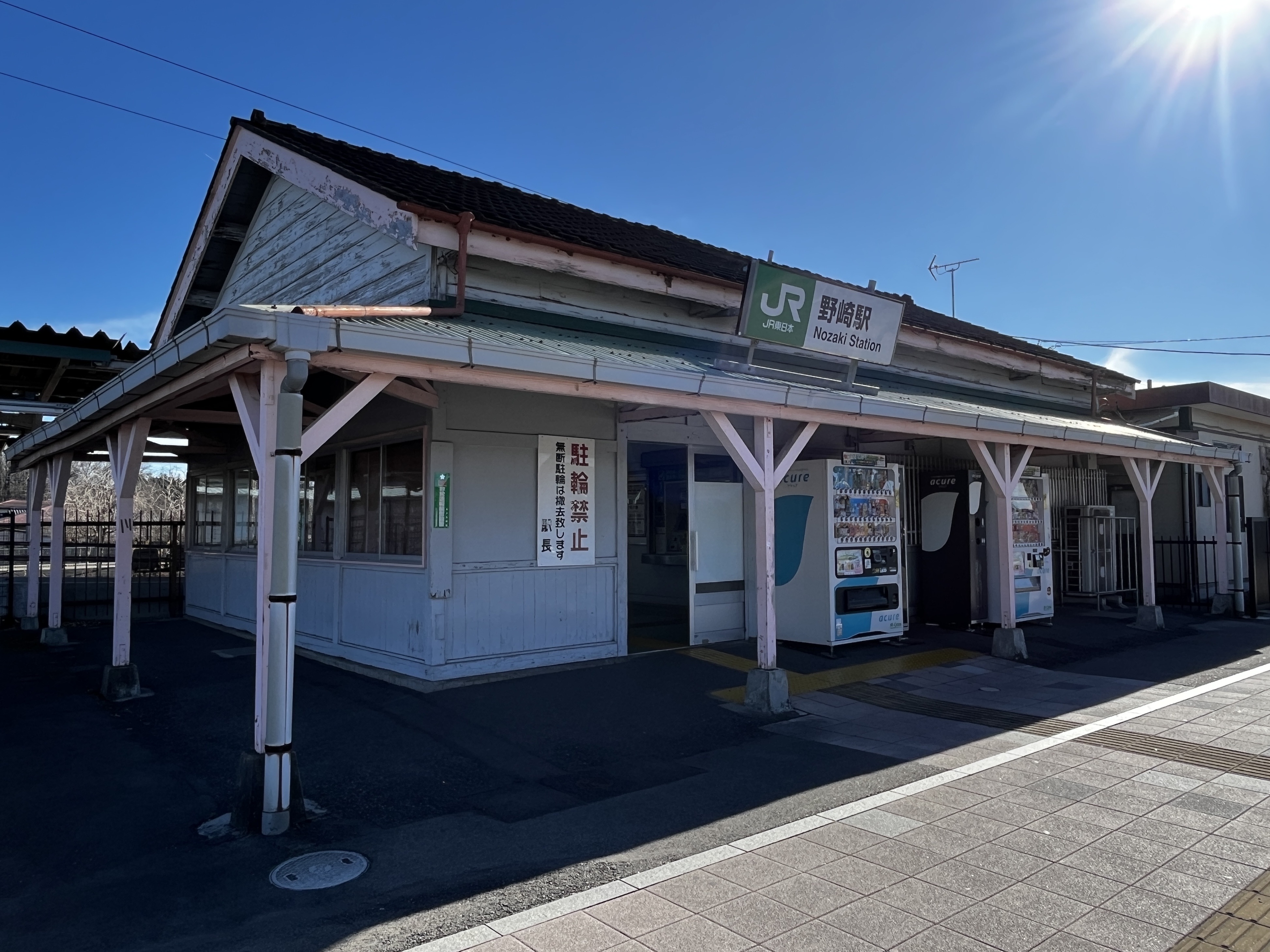 駅舎。柱がピンクっぽくてかわいい。