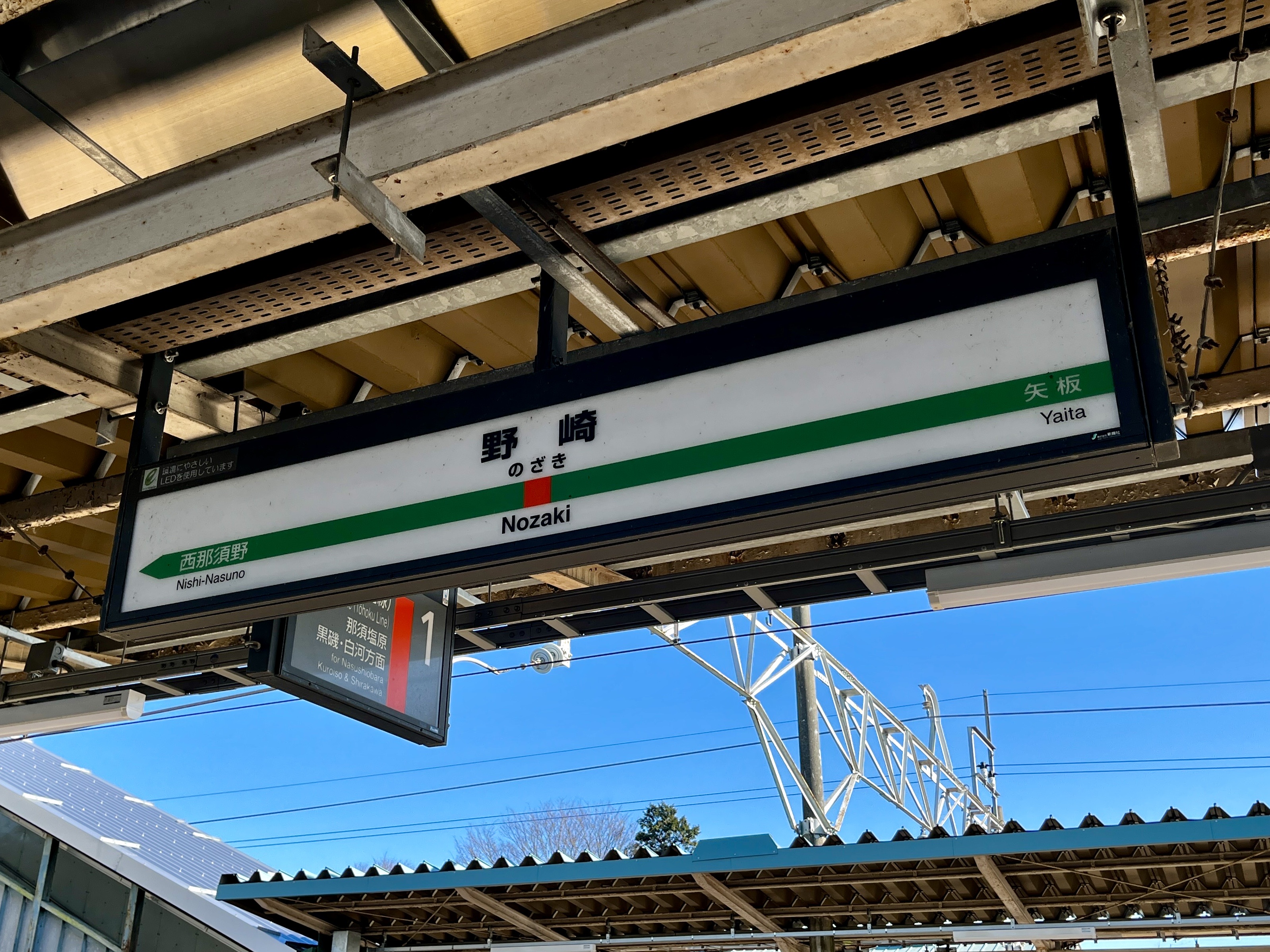 屋根が低いからか、駅名標が細長い…?