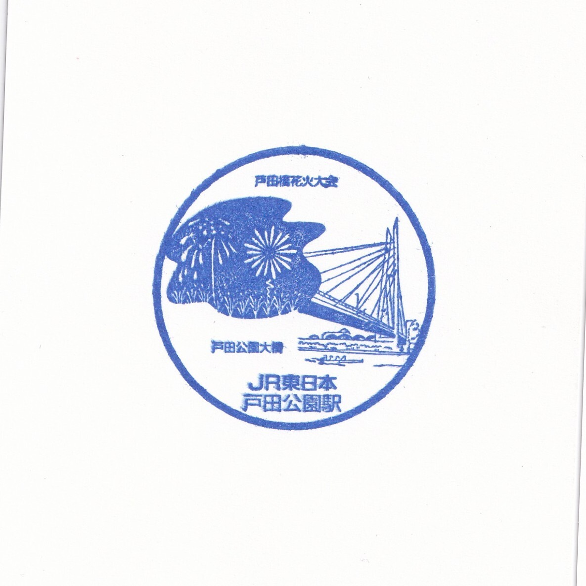 スタンプには、戸田橋花火大会、戸田公園大橋車が描かれています。