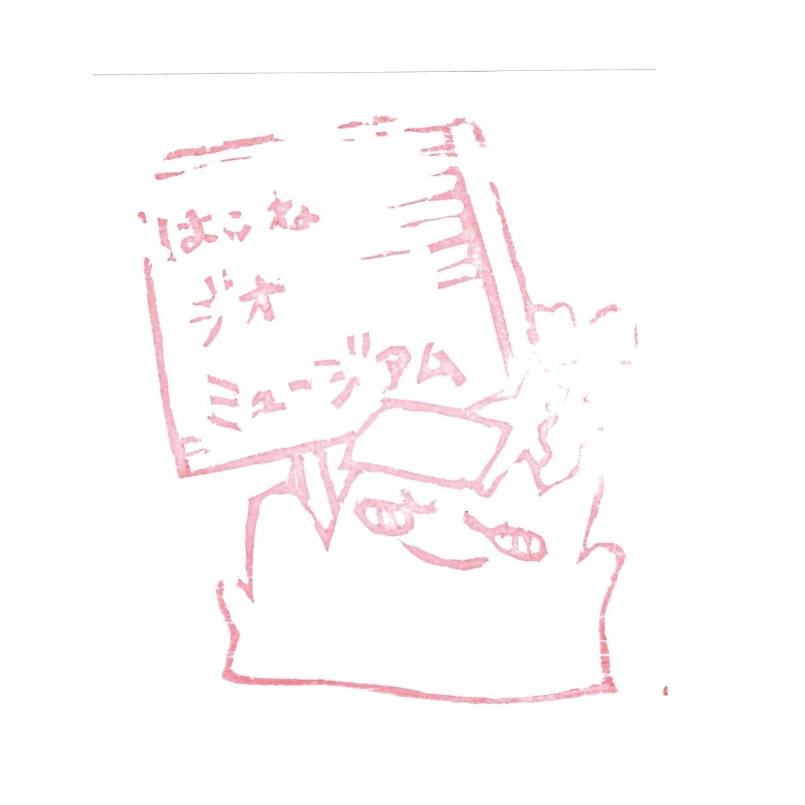 3つ目のスタンプは「はこジ郎」ではない、謎キャラ。看板持たされてるけど、何者なのでしょうか。